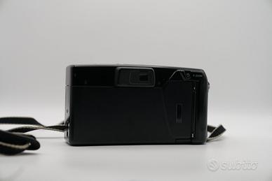 Macchina fotografica analogica vintage Minolta Zoom 90 a rullino, testata e funzionante. Compatta autofocus con obiettivo zoom 38–90mm, flash integrato ed esposizione automatica, ideale come macchina fotografica analogica point‑and‑shoot per ottenere foto dal look vintage su rullino 35mm.