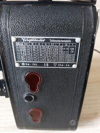 voigtlander bessa in produzione dal 1939 al 1949, a soffietto che viene automaticamente estratto aprendo lo sportello anteriore tramite pulsante.Trattasi di oggetto d ' epoca.