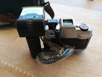 Vendo macchina fotografica analogica Canomatic Deluxe Set macchina fotografica DeLux Marca CanoMatic Tipo : 35MM Comprensiva di borsa originale di trasporto e manuale di istruzioni. Mai usata, praticamente come nuova. Specifiche tecniche: Focalizzazione Automatica Misura della pellicola : 24X36 MM Lente : 50 MM Aperture : F6.3, F8, F11, F16 Autoscatto : 5-14 Secondi - Self Timer. Caricamento pellicola : Automatico Avanzamento pellicola : Automatico Dimensioni : 161x113x Flash compreso automatico con seguenti caratteristiche : FT M ISO/100 ISO/200 ISO/400 22 7 F2.8 F4 F5.6 16 5 F4 F5.6 F8 11 3 F5.6 F8 F11 8 2.5 F8 F11 F16 6 1.8 F11 F16 F22 4 1.2 F16 F22 F32 Tempo caricamento : 10 Secondi Durata del Flash : 1/1000 Secondi Numero di colpi di Flash : 90 No spedizioni , solo ritiro a mano su Roma e provincia.