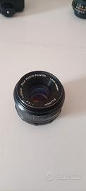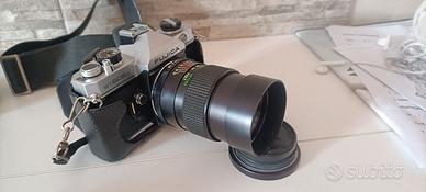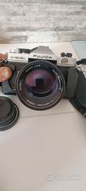 Macchina fotografica analogica Fujica con tre obbiettivi , originale teleobiettivo e grandangolo più flash