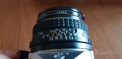 Con Obiettivo originale (49mm Pentax), custodia (Rovinata dal tempo ma ancora buona), flash (Metz mecablitz 20B1)