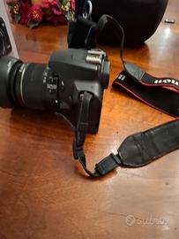 Vendo reflex Canon Eos 1000d con scatola originale e tutti gli accessori (carica batteria, CD, cavi...) in più borsa con tracolla rimovibile e uno zainetto piu grande. Obbiettivo come da fotografia. No video, foto.