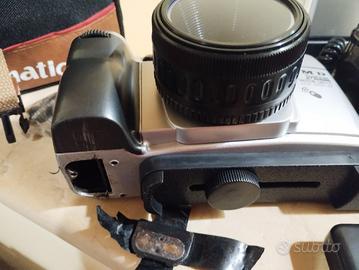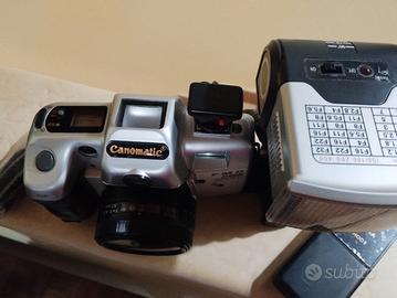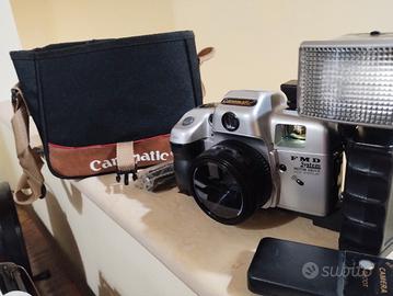 macchina fotografica canomatic FMD sistema, funzionante,scatta ,zumma,non testata con pellicola,sportellino batteria non si chiude,serve del nastro, presente telecomando ,tracolla e custodia,vedi foto