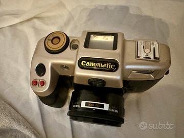 Stupenda macchina fotografica Canomatic vintage, 50mm 1:6.3 Focus Free corredata da custodia e flash. Ottime condizioni generali di conservazione.