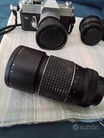 Macchina fotografica con rullino, in aggiunta teleobiettivo, grandangolo e flash