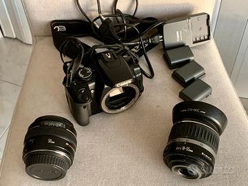 Canon 400D, perfetta, per chi vuole iniziare a fotografare ed imparare, 2 ottiche 50mm fisso, e un 18-55mm.