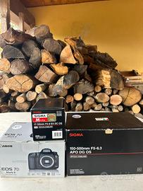 Vendo macchinetta fotografica canon eos 7D mark 2 con teleobbiettivo sigma 150-500mm e un’altro obbiettivo sigma 17-50mm. In dotazione anche caricabatterie con 2 batterie e zaino per portare il tutto. Vendo per inutilizzo, usata davvero poco da amatore (circa 1500 scatti)