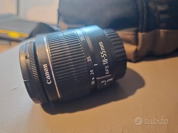 vendo macchina fotografica marca Canon modello EOS1100d con rrlativo obiettivo EFS 18-55 MM e borsa originale. Come nuova