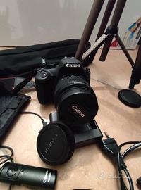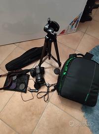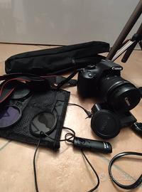 Vendo macchina fotografica Canon EOS 1200D con obiettivo "EFS 18-55 mm", cavalletto con custodia, telecomando autoscatto "rs-60E3" , 3 lenti colorate, scheda SD, batteria, caricabatteria e zaino. Tutto completamente nuovo, tenuto in ottime condizioni.