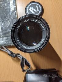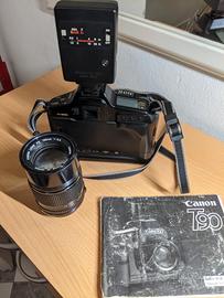 vendo Canon T90 perfettamente funzionante completa di manuale, cavetto comando a distanza flash e due obiettivi originali Canon