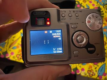 Vendo macchina fotografica Casio per pezzi di ricambio o per chi sa ripararla, la macchina si accende e funziona ma lo schermo rimane nero e le foto vengono nere, sembra non si apra l’otturatore.