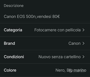 Macchina fotografica Canon vendesi 80€ tratt.come nuova