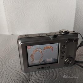 Macchina fotografica perfettamente funzionante per foto e video. Presenta filtri fotografici e zoom 3X. Funziona con batterie AA. Completa di scheda memoria 128MB, cavi per PC e collegamento audio/video, custodia di protezione a cintura, batterie, libretto di istruzioni e confezione originale.