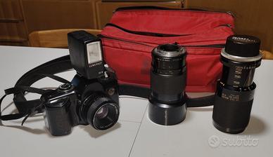Macchina fotografica Yashica 108 Obiettivo Yashica 50mm Zoom Yashica 28-80 Zoom Tamron 80-210 Flash Lumiphot 22B Set completo di borsa. Tutto funzionante. Il prezzo è leggermente trattabile, considero offerte purché oneste