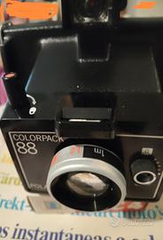 Macchina fotografica a colori funzionante con scatola.