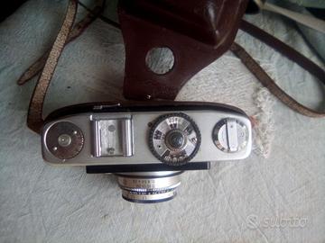 Macchina fotografica dacora dignette (produzione tedesca) in perfette condizioni corredata di flash da installare caratteristiche della macchina: dacora dignette s l -herstellerdacora - movimento della fotocamera, typdacora dignette s l fotocamera di tipo film 24 x 36 mm, piccolo schermo pellicole 135 anno 1963 ottica steinheil monaco - cassa 1: 2, 8/45 mm messa a fuoco manuale, 0,95 m - ∞ il risultato della misurazione viene letto dall'alto e manualmente sull'obiettivo.