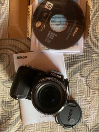 La fotocamera Nikon Coolpix L110 è una fotocamera compatta dotata di uno zoom ottico 15x e un sensore di immagine CCD da 12,1 megapixel. È in grado di registrare video ad alta definizione a 720p e dispone di un display LCD da 3 pollici per la visualizzazione e la riproduzione delle immagini. La fotocamera è inoltre dotata di stabilizzazione dell'immagine per ridurre al minimo l'effetto sfocatura e garantire scatti nitidi. Può essere utilizzata in modalità automatica o manuale, offrendo una vasta gamma di opzioni per gli utenti con diversi livelli di esperienza fotografica. La Coolpix L110 ha un design ergonomico e compatto, rendendola comoda da trasportare e utilizzare. La fotocamera utilizza batterie AA, che possono essere facilmente sostituite quando necessario. Inoltre, dispone di diverse modalità di scena e filtri creativi per personalizzare le proprie immagini.