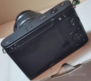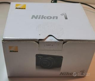 Macchina fotografica digitale Nikon 1 J1 corpo nero, con 3 batterie, un obiettivo (vedi foto) e 1 memory card da 64 Mb.