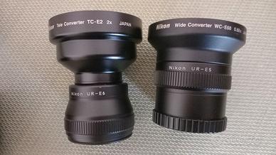 Nikon Coolpix 5000 + aggiuntivo grandangolare Nikon Wc E 68 + aggiuntivo teleobiettivo TC E2 + accessori vari