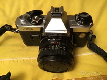 Macchina fotografica anni 80 fujica ax1 originale con bollino di regolare importazione con custodia originale. Ferma da tempo ma funzionante . Compresi nel prezzo flash e obbiettivo aggiuntivo Vivitar 70/210 eventualmente vendibile anche singolarmente
