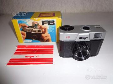 Macchina fotografica italiana vintage anni '70 marca MUPI F6, perfettamente funzionante con scatola originale e foglio istruzioni.