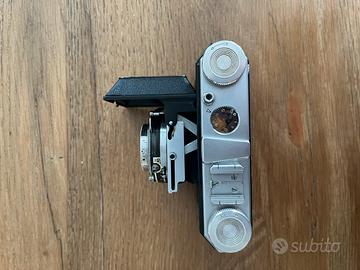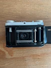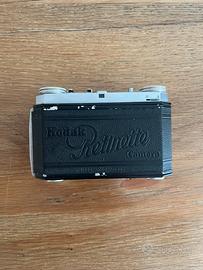 Macchina fotografica analogica vintage Kodak Retinette (017), con obiettivo Kodak Anastigmat Angenieux 50mm 1:4.5. Variante per il mercato francese. La macchina è funzionante, i tempi sono corretti (la posa B a volte non si chiude subito, ma la macchina rimane funzionante senza problemi). I diaframmi si aprono e chiudono in modo fluido, la ghiera di messa a fuoco gira ed è morbida. Soffietto integro.