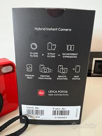 Leica modello Sofort 2 hybrid Instant Camera , completa di una scheda pellicole Leica SOFORT . Tecnologia Ibrida: Permette di scattare foto digitali, visualizzarle su uno schermo LCD da 3 pollici e scegliere quali stampare fisicamente Colore rosso Come nuova usata pochissimo