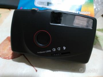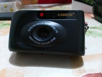 Vendo e valuto offerte per fotocamera analogica a pellicola dal design compatto in plastica nera ideali per collezionisti. 1- modello Amichi con obiettivo a lente ottica a colori da 50mm con sistema auto fx Focus 2- modello Wizen dx a punta e scatta con flash integrato con interruttore On-off 3-modello Ouyama Mitsuca 8F-800 con flash integrato attuabile tramite On-off 4-modello Ouyama K-148 con obiettivo fisso a lente ottica a colori.