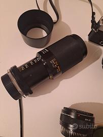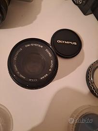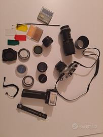 Macchina fotografica analogica Olympus OM-1 con obbiettivo 50mm, tele 80/210, macro 1:2,8, duplicatore, adattatore , filtri vari, flash, accessori vari, confezione e manuali originali, borsa a tracolla. vendita del blocco completo.