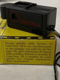 Vendo macchina fotografica micro Color Time 110 con pellicola a colori Scotch 3M, piccolo gioiello della tecnologia a regolazione automatica, in ottime condizioni. Si prega di contattare Graziano 340-4110406 dalle 10 alle 19. SI SPEDISCE SOLO DOPO EVENTUALE BONIFICO + SPESE DI SPEDIZIONE, oppure la merce va ritirata personalmente e pagata in contanti, a Vago di Lavagno (VR).