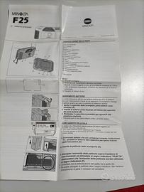 vendo come da foto macchina fotografica Minolta F.25 35 mm a rullino (NON COMPRESO) NUOVA nella sua custodia e scatola originale con istruzioni! Funzionante. Solo se interessati! Non accetto resi!