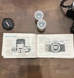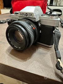 Vendo macchina fotografica MINOLTA funzionante insieme a 2 rullini il libretto di istruzioni e la borsa apposita per inserire tutto all’interno.