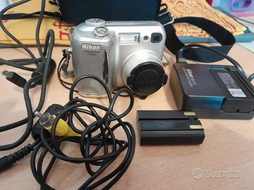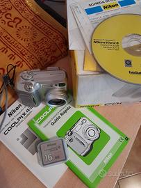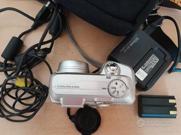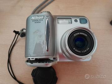 macchina fotografica vintage Nikon coolpix 4300 completa di tutto. Ho ancora la scatola originale, libretto, garanzia, cavi, doppia batteria, sheda di memoria originale da 16MB sostituita con 128 MB. è assolutamente funzionante ma segnalo che la chiusura coperchietto del vano batteria non si blocca e che la copertura in gomma dei connettori usb si è rotta. Le condizioni sono visibili in foto. Si valutano offerte.
