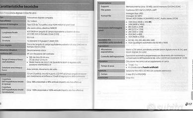 Vendesi macchina fotografica, marca “Nikon”, modello “Coolpix L810”, colore “testa di moro”, completa del manuale di istruzione e di tutti gli accessori di base previsti e visibili in foto. Caratteristiche tecniche elencate nelle foto allegate. Per il funzionamento occorrono quattro batterie cilindriche formato “AA”. Trattasi di macchina fotografica in perfetto stato conservativo in quanto non è stata mai utilizzata. Vendesi alla modica somma economica di 130,00 euro.