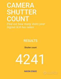 Vendo: Nikon D5600 con kit obbiettivo 18-55 VR, confezione originale + manuale d'uso + caricabatteria + doppia batteria Pantona con caricatore+ filtro polarizzatore + telecomando originale Nikon. Scatti effettuati 4241. Praticamente nuova! Acquistata per un progetto di lavoro e mai più utilizzata. Macchina fotografica con Bluetooth Wi-Fi e app dedicata che permette di salvare le foto direttamente sullo smartphone per la condivisione immediata sui social. Vendo per mancato utilizzo.
