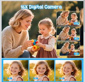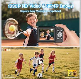 Fotocamera Digitale 1080P 44MP Macchina Fotografica Vlogging per Bambini Ragazzi, FHD Compatta Portatile con Schermo da 2,4" Zoom 16X, Mini Fotocamera Anti-Shake per Principianti Studenti-Nero. Nuova mai usata ancora nello scatolo