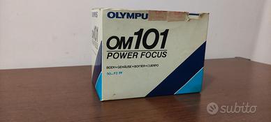 Macchina fotografica reflex OLIMPUS OM 101 Power Focus perfettamente funzionante,qualsiasi prova,completa di accessorio Manuale Adapter già montato,copriobbiettivo,e imballo originale e documenti acquisto.Obiettivo originale no graffi o polvere,vedi foto.Spedisco.
