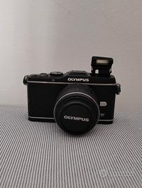macchina fotografica Olympus pen e+P3 con obbiettivo 14-48 mm e caricatore