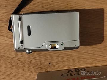 Come da foto macchina fotografica a rullino espio analogica. Prodotto praticamente nuovo, solo testato per funzionamento. Incluso tutto quello in foto, batterie non incluse ma sono le classiche stilo. Formula visto e piaciuto vendita tra privati