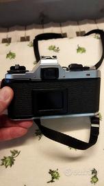 Pentax manuale e automatica a priorità di tempi con obiettivo originale 50 mm. Più Tokina 80 200 filtri rosso, polarizzatore,altro effetto arcobaleno e verde. I filtri si possono usare per entrambi gli obiettivi tramite anello adattatore compreso. A corredo anche la borsa con tre piede e flash National pe 300sgv da riparare.La macchina e le lenti sono in ottimo stato perfettamente funzionanti.Prezzo no trattabile si prega di evitare inutili trattative.