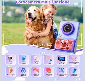 Fotocamera Istantanea Bambini, 20MP 1080P HD Fotocamera Digitale Portatile con Display 2,4 Pollici, 3 Rotoli Carta Fotografica a Colori, Scheda Memoria 32GB, Regalo Bambini 3–14, Viola. Nuova mai usata ancora nello scatolo