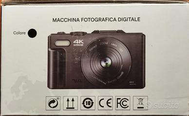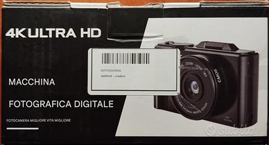 Macchina fotografica compatta, 64 Mb con Zoom ottico 18x, ideale per video in 4K, con avvitatura per cavalletto e lampada flash incorporata e schermo visore orientabile di 180°. Menu in diverse lingue, compreso l'Italiano.