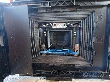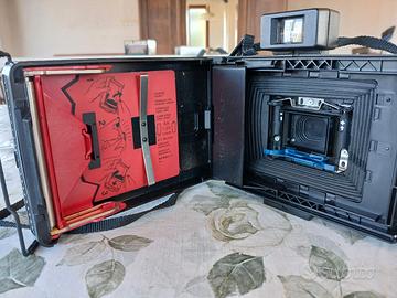 Macchina fotografica per istantanee, a soffietto, funzionante, con scatola, istruzioni e opuscolo originali. Fine anni 70.
