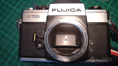 Vendo nello stato di come sono le fotografie allegate macchina fotografica Fujica modello ST701 con obbiettivo Tamron 28mm 1:2.5 BBAR MC Adaptall 2. Non ho idea se funziona ancora correttamente sicuramente è da pulire e revisionare; per questo la vendo come oggetto usato con parti guaste. L'interno della macchina comunque appare privo di muffe o simili. Non ho provato esposimetro a cui serve la batteria.