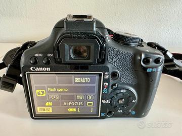 Macchina fotografica Reflex marca Canon, modello EOS 500 D, versione americana REBEL T1i. Con caricabatterie, 1 batteria originale, 2 schede memoria 4 GB Sandisk. Ottica stabilizzata efs 18-55 mm, filtro protezione UV lente, vetro proteggi display. Vendo con borsa a tracolla e portaaccessori Tucano. In ottime condizioni, usata pochissimo.