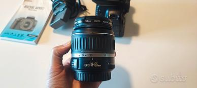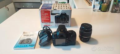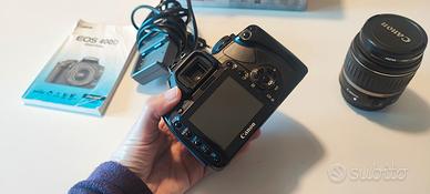 Vendo a buon prezzo macchina fotografica reflex Canon 400d Digital, completa di scatola, manuale, caricabatteria. In omaggio metto l'obiettivo di dotazione, il 18-55 Canon, funzionante ma non è fluido nel movimento dello zoom (ovvero quando lo si muove con la mano per zoomare va un po' a scatti). L'oggetto si trova a Mestre, oppure spedisco. spedizione a carico dell'acquirente.