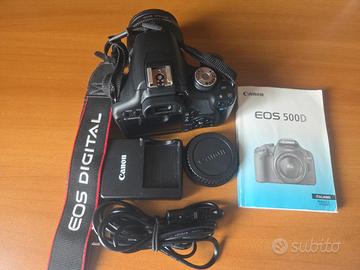 Vendo Canon EOS 500 D in ottime condizioni completa di obiettivo standard Canon EF-S 18-55 completa di accessori: -Batteria + Caricabatteria originali - manuale di istruzioni - scheda SD - cavo USB per collegamento al PC Solo consegna a mano.