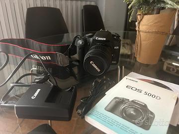 Macchina fotografica Reflex Canon eos 500d con obiettivo 18-55 m Comprensiva di carica batteria, scheda memoria, istruzioni e borsa porta macchina. In condizioni eccellenti e con numeri di scatti sui 2.000. prezzo non trattabile