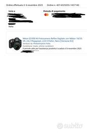 Vendo macchina fotografica reflex Nikon D3300 acquistata a novembre 2023 su amazon come si puo vedere dall’ultima immagine. Vendo per inutilizzo, utilizzata il primo mese e poi riposta nel cassetto. Prezzo trattabile. Preferibilmente vendita a mano.