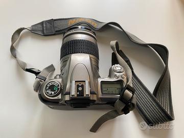 Macchina fotografica reflex Nikon F55 + Obiettivo AF Nikkor 28-80mm 3.3-5.6G. In ottime condizioni. Compresa custodia di grandi dimensioni come da foto